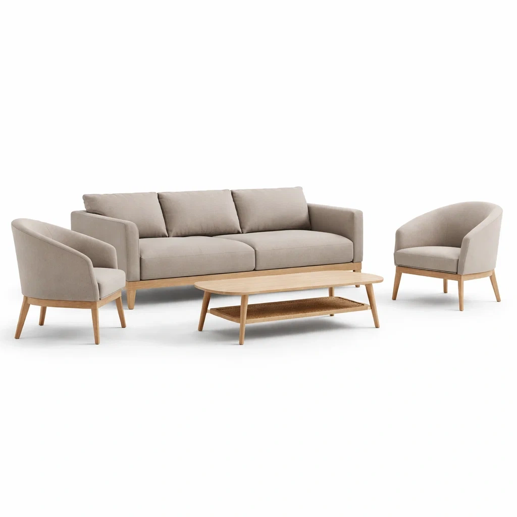 Set di divani con Divano Tre Posti e Poltrone in Tessuto Grigio e Tavolino in Legno