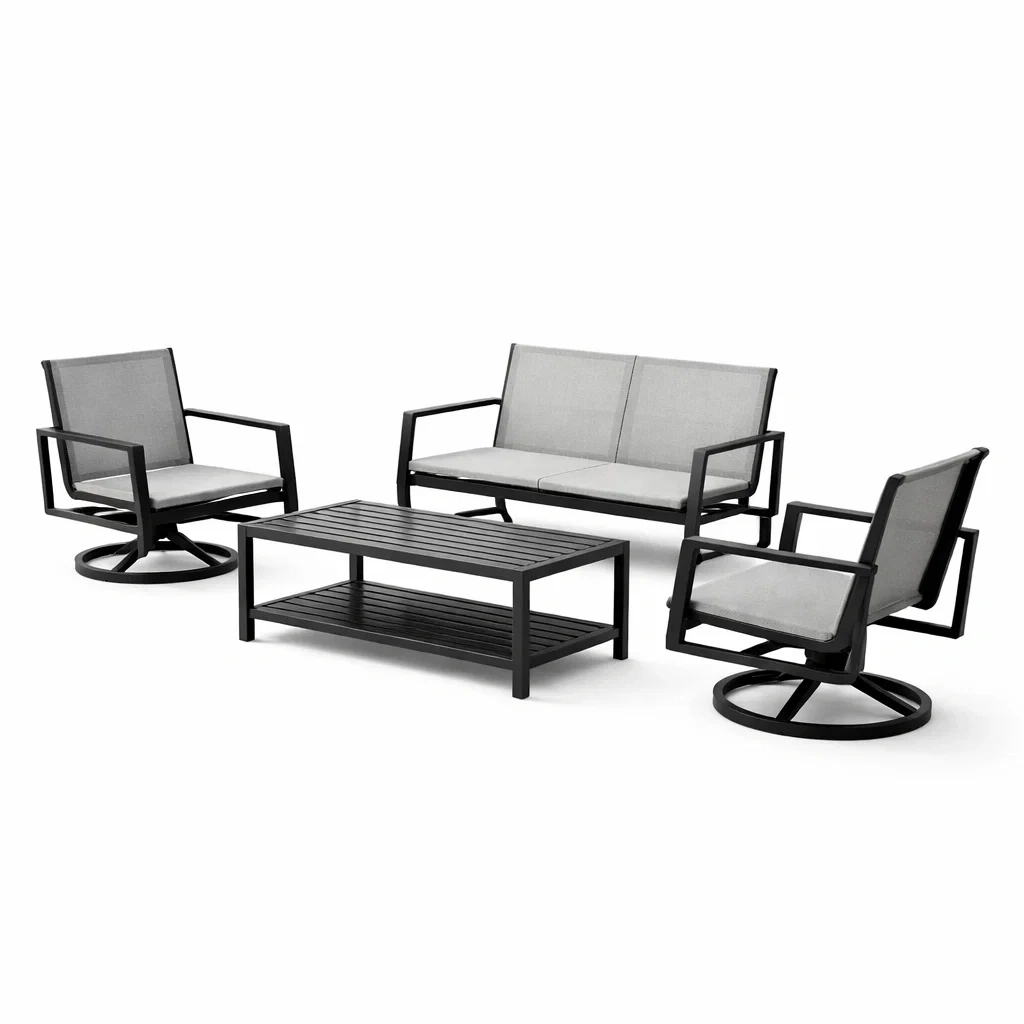 Set da conversazione salotto da esterno in alluminio nero con cuscini grigi 4 pezzi